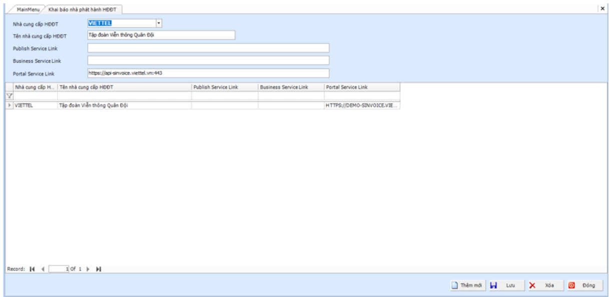 Điền Link liên kết vào trường Portal Service Link: <https://api-sinvoice.viettel.vn:443>